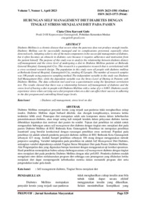 Gulo, Cipta Citra Karyani (2023) HUBUNGAN SELF MANAGEMENT DIET DIABETES DENGAN TINGKAT STRESS MENJALANI DIET PADA PASIEN. Prepotif: Jurnal Kesehatan Masyarakat, 7 (1): 125. pp. 529-535. ISSN ISSN 2623-1581