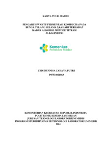 Chairunnisa, Cahaya Putri (2024) PENGARUH WAKTU FERMENTASI KOMBUCHA PADA BUNGA TELANG SELAMA 2,4,6 HARI TERHADAP KADAR ALKOHOL METODE TITRASI ALKALIMETRI. Diploma thesis, Poltekkes Kemenkes Medan.