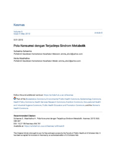 Masthalina, Herta (2015) Pola Konsumsi dengan Terjadinya Sindrom Metabolik di Indonesia. Pola Konsumsi dengan Terjadinya Sindrom Metabolik di Indonesia, 9 (4). pp. 340-347. ISSN 2460-0601