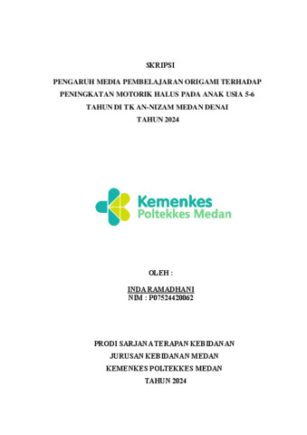 Inda, Ramadhani (2024) PENGARUH MEDIA PEMBELAJARAN ORIGAMI TERHADAP PENINGKATAN MOTORIK HALUS PADA ANAK USIA 5-6 TAHUN DI TK AN-NIZAM MEDAN DENAI TAHUN 2024. Diploma thesis, Poltekkes Kemenkes Medan.