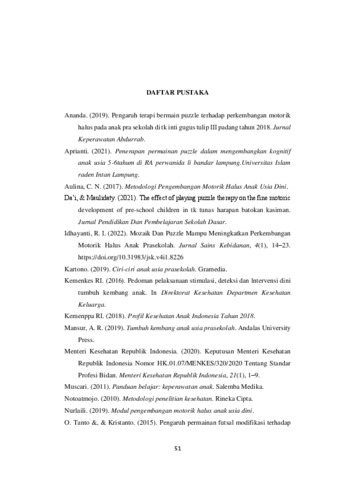 Cindy, Arista Ria (2024) PENGARUH BERMAIN PUZZLE TERHADAP PERKEMBANGAN MOTORIK HALUS ANAK USIA 60-72 BULAN DI RA BINMUDORA DESA LENGAU SEPRANG KECAMATAN TANJUNG MORAWA TAHUN 2024. Diploma thesis, Poltekkes Kemenkes Medan.