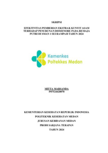 MITTA, MARSANDA (2024) EFEKTIVITAS PEMBERIAN EKSTRAK KUNYIT ASAM TERHADAP PENURUNAN DISMENORE PADA REMAJA PUTRI DI SMAN 1 SEI RAMPAH TAHUN 2024. Diploma thesis, Poltekkes Kemenkes Medan.