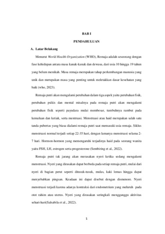 Kata Kunci : Dismenore Remaja Putri, Ekstrak Kunyit Asam