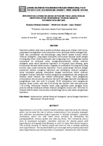 naibaho, risdiana melinda (2025) IMPLEMENTASI LATIHAN RELAKSASI AUTOGENIK PADA LANSIA DENGAN HIPERTENSI UNTUK MENURUNKAN TEKANAN DARAH DI POSYANDU DESA BINTANG. Hipertensi adalah salah satu masalah kesehatan yang umum dialami oleh lansia, yang dapat meningkatkan risiko komplikasi serius jika tidak dikelola dengan baik. Salah satu pendekatan non-farmakologis yang efektif adalah melalui teknik relaksasi autogenik,, 8 (5): 31. pp. 2594-2604. ISSN 615-0921