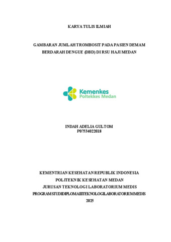 Gultom, Adelia Indah (2025) GAMBARAN JUMLAH TROMBOSIT PADA PASIEN DEMAM BERDARAH DENGUE (DBD) DI RSU HAJI MEDAN. Diploma thesis, Poltekkes Medan.