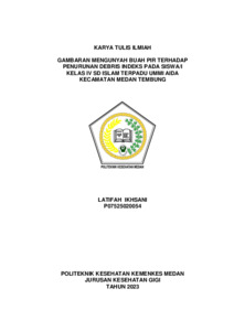 Ikhsani, Latifah (2023) Gambaran Mengunyah Buah Pir Terhadap Penurunan Debris Indeks Pada Siswa/i Kelas IV SD Islam Terpadu Ummi Aida Kecamatan Medan Tembung. Diploma thesis, Poltekkes Kemenkes Medan.