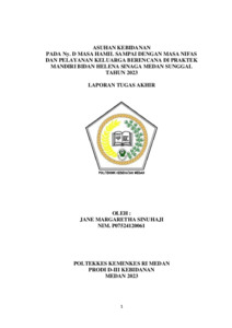Sinuhaji, Jane Margaretha (2023) ASUHAN KEBIDANAN PADA Ny. D MASA HAMIL SAMPAI DENGAN MASA NIFAS DAN PELAYANAN KELUARGA BERENCANA DI PRAKTEK MANDIRI BIDAN HELENA SINAGA MEDAN SUNGGAL TAHUN 2023. Diploma thesis, Poltekkes Kemenkes Medan.