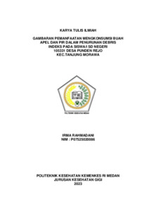 Rahmadani, Irma (2023) Gambaran Pemanfaatan Mengkonsumsi Buah Apel dan Pir dalam Penurunan Debris Indeks pada Siswa/i SD Negeri 105331 Desa Punden Rejo Kec. Tanjung Morawa. Diploma thesis, Poltekkes Kemenkes Medan.