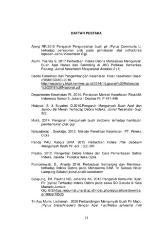 penurunan debris indeks. Sampel dalam penelitian ini adalah 30 orang siswa/i kelas V SD Negeri 105331 Desa Punden Rejo Kec. Tanjung Morawa. Hasil penelitian menunjukan debris indeks rata-rata sebelum mengkonsumsi buah apel adalah 1,34 dan sesudah mengkonsumsi buah apel adalah 0,6 dengan selisih 0,74. Sedangkan sebelum mengkonsumsin buah pir adalah 1,3 dan sesudah mengkonsumsi buah pir adalah 0,52 dengan selisih 0,78. Kesimpulan dari penelitian ini adalah buah apel dan pir sama sama berperan dalam penurunan debris indeks. Buah pir lebih banyak mengalami penurunan debris indeks dari pada buah apel.