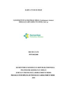 Sri, Mulyani (2025) UJI EFEKTIVITAS EKSTRAK SERAI (Cymbopogon citratus) SEBAGAI LARVASIDA NYAMUK Culex sp. Diploma thesis, Poltekkes Medan.