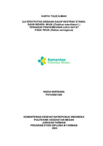 Nadia Nurdiana, Nadia Nurdiana (2024) UJI EFEKTIVITAS SEDIAAN SALEP EKSTRAK ETANOL DAUN BIDARA ARAB (Ziziphus mauritiana L.) TERHADAP PENYEMBUHAN LUKA SAYAT PADA TIKUS PUTIH (Rattus norvegicus). Diploma thesis, Poltekkes Kemenkes Medan.