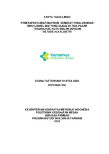 ELSHA FATTAHHANI KHAYZA ASDI, ELSHA FATTAHHANI KHAYZA ASDI (2024) PENETAPAN KADAR NATRIUM BENZOAT PADA MANISAN BUAH JAMBU BIJI YANG DIJUAL DI TIGA PASAR TRADISIONAL KOTA MEDAN. Diploma thesis, Poltekkes Kemenkes Medan.