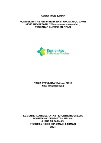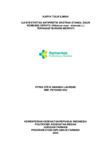 FITRIA STEVI AMANDA LAUREND, FITRIA STEVI AMANDA LAUREND (2024) UJI EFEKTIVITAS ANTIPIRETIK EKSTRAK ETANOL DAUN KEMBANG SEPATU (Hibiscus rosa - sinensis L.) PADA BURUNG MERPATI. Diploma thesis, Poltekkes Kemenkes Medan.
