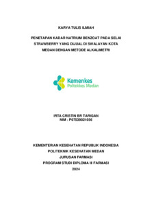 BR TARIGAN, IRTA CRISTIN BR TARIGAN (2024) PENETAPAN KADAR NATRIUM BENZOAT PADA SELAI STRAWBERRY YANG DIJUAL DI SWALAYAN KODA MEDAN DENGAN METODE ALKALIMETRI. Diploma thesis, Poltekkes Kemenkes Medan.