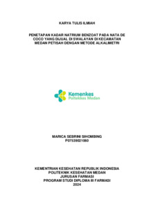 SIHOMBING, MARICA SEBRINI SIHOMBING (2024) PENETAPAN KADAR NATRIUM BENZOAT PADA NATA DE COCO YANG DIJUAL DI SWALAYAN DI KECAMATAN MEDAN PETISAH DENGAN METODE ALKALIMETRI. Diploma thesis, Poltekkes Kemenkes Medan.