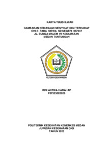 Harahap, Rini Antika (2023) Gambaran Kebiasaan Menyikat Gigi Terhadap OHI-S Pada Siswa SD Negeri 067247 Jl. Bunga Malem VII Kecamatan Medan Tuntungan. Diploma thesis, Poltekkes Kemenkes Medan.