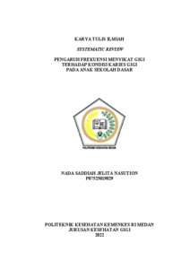 karies gigi pada anak sekolah dasar. Penelitian ini dilakukan dengan mereview 10 artikel yang terkait dengan judul. Hasil systematic review dari 10 artikel menunjukkan frekuensi menyikat gigi pada anak sekolah dasar 50% kurang baik. Sedangkan untuk angka kariesnya diperoleh 50% anak sekolah dasar mengalami karies dengan kategori tinggi . Dari