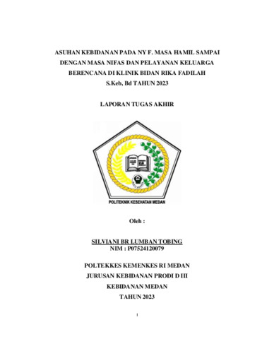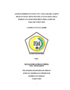 Tobing, Silviani Br Lumban (2023) ASUHAN KEBIDANAN PADA NY F. MASA HAMIL SAMPAI DENGAN MASA NIFAS DAN PELAYANAN KELUARGA BERENCANA DI KLINIK BIDAN RIKA FADILAH S.Keb, Bd TAHUN 2023. Diploma thesis, Poltekkes Kemenkes Medan.