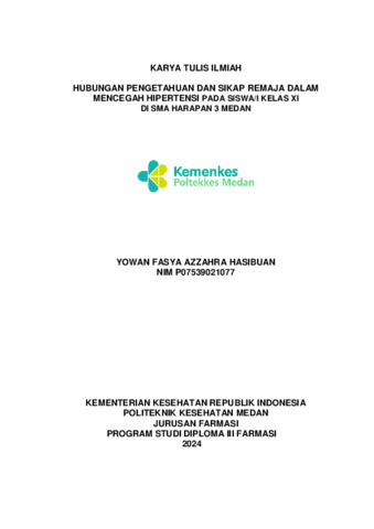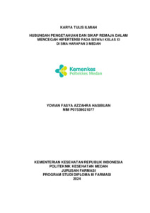 HASIBUAN, YOWAN FASYA AZZAHRA HASIBUAN (2024) HUBUNGAN PENGETAHUAN DAN SIKAP REMAJA DALAM MENCEGAH HIPERTENSI PADA SISWA/I KELAS XI DI SMA HARAPAN 3 MEDAN. Diploma thesis, Poltekkes Kemenkes Medan.