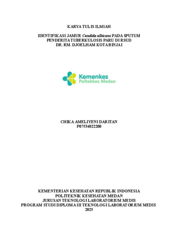 Tan, Chika Ameliyeni (2025) IDENTIFIKASI JAMUR Candida albicans PADA SPUTUM PENDERITA TUBERKULOSIS PARU DI RSUD DR. RM. DJOELHAM KOTA BINJAI. Diploma thesis, Poltekkes Medan.