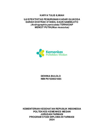 BULOLO, DEWINA BULOLO (2024) UJI EFEKTIVITAS PENURUNAN KADAR GLUKOSA DARAH EKSTRAK ETANOL DAUN SAMBILOTO(Andrographis paniculata) TERHADAP MENCIT PUTIH(Mus musculus). Diploma thesis, Poltekkes Kemenkes Medan.