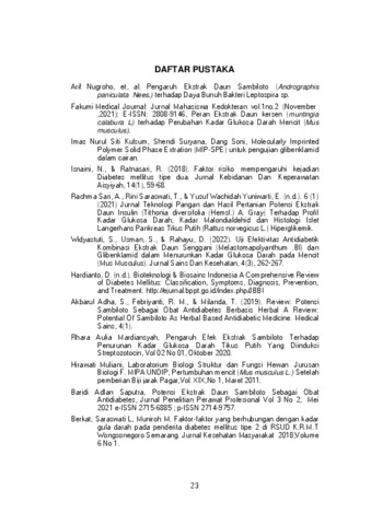 Kata Kunci : Ekstrak, Daun Sambiloto, Glibenklamid, Diabetes