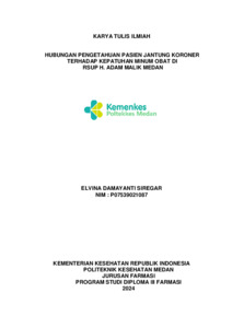 SIREGAR, ELVINA DAMAYANTI SIREGAR (2024) HUBUNGAN PENGETAHUAN PASIEN JANTUNG KORONER TERHADAP KEPATUHAN MINUM OBAT DI RSUP H. ADAM MALIK MEDAN. Diploma thesis, Poltekkes Kemenkes Medan.