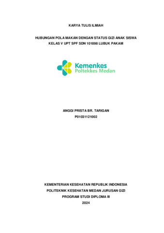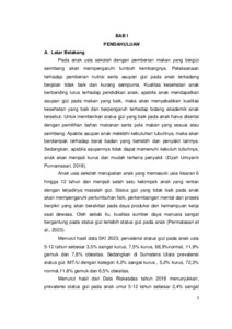 Makan Dengan Status Gizi Anak Siswa Kelas V UPT SPF SDN 101898 Lubuk Pakam Penelitian ini dilakukan di SDN 101898 Lubuk Pakam. Jenis penelitian yang digunakan adalah survey deskriptif. Jumlah sampel dalam penelitian ini adalah 47 anak. Pengumpulan data dilakukan dengan cara wawancara secara langsung terhadap sampel dengan menggunakan kuesioner dan food recall 24 jam 3 hri tidak berturut-turut Hasil penelitian menunjukkan 70,2% pola makan dalam kategori