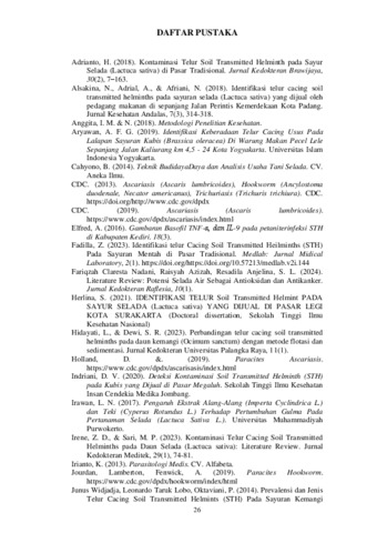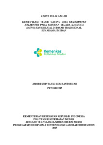 Lumban toruan, Amori Shinta Uli (2025) IDENTIFIKASI TELUR CACING SOIL TRANSMITTED HELMINTHS PADA SAYURAN SELADA (LACTUCA SATIVA) YANG DIJUAL DI PASAR TRADISIONAL SUKARAMAI MEDAN. Diploma thesis, Poltekkes Medan.