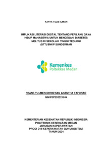 Frans Yulmen Christian Anantha, Tafonao (2024) Implikasi Literasi Digital Tentang Perilaku Gaya Hidup Mahasiswa Untuk Mencegah Diabets Melitus Di Sekolah Tinggi Teologi (STT) BNKP Sunderman. Diploma thesis, Poltekkes Kemenkes Medan.