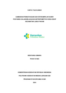 ASMARA, BEBI RANU (2024) GAMBARAN PENGETAHUAN DAN KETERAMPILAN KADER POSYANDU DALAM MELAKUKAN ANTROPOMETRI DI DESA SEKIP KECAMATAN LUBUK PAKAM. Diploma thesis, Poltekkes Kemenkes Medan.