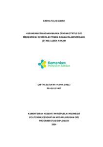 DAELI, CHITRA SETIA NATHANIA (2024) HUBUNGAN KEBIASAAN MAKAN DENGAN STATUS GIZI MAHASISWA/I DI SEKOLAH TINGGI AGAMA ISLAM SERDANG (STAIS) LUBUK PAKAM. Diploma thesis, Poltekkes Kemenkes Medan.