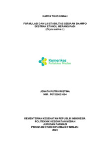 JENATA PUTRI KRISTINA, JENATA PUTRI KRISTINA (2024) FORMULASI DAN UJI STABILITAS SEDIAAN SHAMPO EKSTRAK ETANOL MERANG PADI (Oryza sativa L.). Diploma thesis, Poltekkes Kemenkes Medan.
