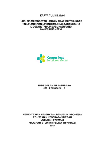 BATUBARA, UMMI SALAMAH BATUBARA (2024) HUBUNGAN PENGETAHUAN DAN SIKAP IBU TERHADAP TINDAKAN PENANGANAN DEMAM PADA ANAK BALITA DI DESA HUTARAJA SIABU KABUPATEN MANDAILING NATAL. Diploma thesis, Poltekkes Kemenkes Medan.