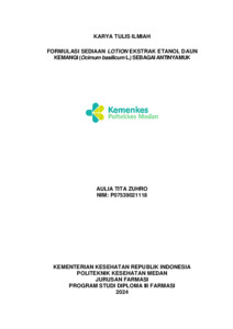 AULIA TITA ZUHRO, AULIA TITA ZUHRO (2024) FORMULASI SEDIAAN LOTION EKSTRAK ETANOL DAUN KEMANGI (Ocimum basilicum L.) SEBAGAI ANTINYAMUK. Diploma thesis, Poltekkes Kemenkes Medan.