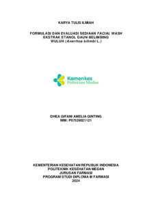 GINTING, DHEA GIFANI AMELIA GINTING (2024) FORMULASI DAN EVALUASI SEDIAAN FACIAL WASH EKSTRAK ETANOL DAUN BELIMBING WULUH (Averrhoa bilimbi L.). Diploma thesis, Poltekkes Kemenkes Medan.