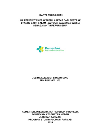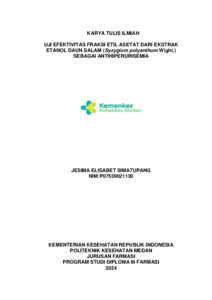 SIMATUPANG, JESIMA ELISABET SIMATUPANG (2024) UJI EFEKTIVITAS FRAKSI ETIL ASETAT DARI EKSTRAK ETANOL DAUN SALAM (Syzygium polyanthum Wight.) SEBAGAI ANTIHIPERURISEMIA. Diploma thesis, Poltekkes Kemenkes Medan.