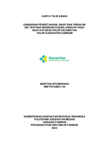 SITUMORANG, MARTOGI SITUMORANG (2024) GAMBARAN PENGETAHUAN, SIKAP DAN TINDAKAN IBU TENTANG IMUNISASI DASAR LENGKAP PADA BALITA DI DESA PALIPI KECAMATAN PALIPI KABUPATEN SAMOSIR. Diploma thesis, Poltekkes Kemenkes Medan.