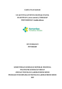 Siti, Nurhayati (2025) UJI AKTIVITAS ANTIFUNGI EKSTRAK ETANOL BUAH PINANG (Areca catechu L) TERHADAP PERTUMBUHAN Candida albicans. Diploma thesis, Poltekkes Medan.