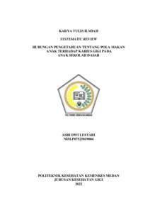 Lestari, Asri Dwi (2022) Hubungan Pengetahuan Tentang Pola Makan Anak Terhadap Karies Gigi Pada Anak Sekolah Dasar. Diploma thesis, Poltekkes Kemenkes Medan.