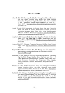 untuk mengetahui gambaran pengetahuan ibu tentang pemeliharaan kesehatan gigi dan mulut terhadap status karies gigi anak prasekolah. Hasil penelitian systematic review dari 10 artikel yang direview menunjukkan
