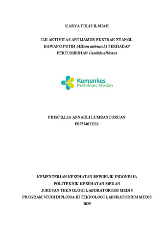 Lumbantoruan, Friscillia Annauli (2025) UJI AKTIVITAS ANTIJAMUR EKSTRAK ETANOL BAWANG PUTIH (Allium sativum L) TERHADAP PERTUMBUHAN Candida albicans. Diploma thesis, Poltekkes Medan.