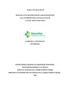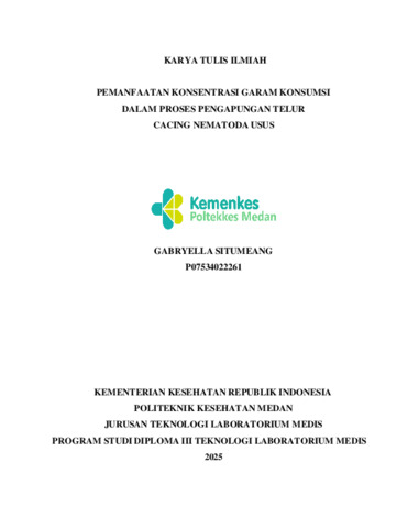 Situmeang, Gabryella (2025) PEMANFAATAN KONSENTRASI GARAM KONSUMSI DALAM PROSES PENGAPUNGAN TELUR CACING NEMATODA USUS. Diploma thesis, Poltekkes Medan.
