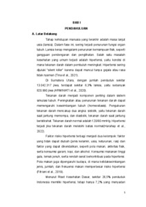 Hipertensi yaitu suatu kondisi dimana tekanan darah pada pembuluh darah meningkat. Menurut Laporan Riset Kesehatan Dasar, prevalensi hipertensi di Indonesia menunjukkan sekitar 26,5%. Faktor penyebab resiko hipertensi terbagi menjadi dua kelompok yaitu faktor yang tidak dapat diubah (jenis kelamin, usia, dan keturunan) dan faktor yang dapat