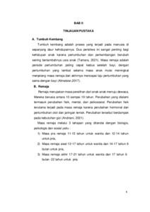 Masa remaja merupakan masa peralihan dari anak-anak menuju dewasa yang mengalami laju percepatan pertumbuhan kedua setelah masa bayi yang disebut masa pubertas. Salah satu tanda pada masa pubertas seorang wanita disebut dengan menarche. pra menarche sebagai awal pubertas melibatkan