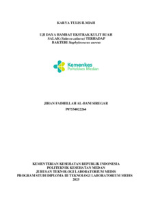 Siregar, Jihan Fadhillah Albani (2025) UJI DAYA HAMBAT EKSTRAK KULIT BUAH SALAK (Salacca zalacca) TERHADAP BAKTERI Staphylococcus aureus. Diploma thesis, Poltekkes Medan.