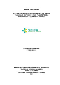 RAISAH AMALIA PUTRI, RAISAH AMALIA PUTRI (2024) UJI KANDUNGAN MERKURI (Hg+) PADA KRIM WAJAH YANG AMAN UNTUK IBU HAMIL YANG TERSEDIA DI PLATFORM E-COMMERCE SHOPEE. Diploma thesis, Poltekkes Kemenkes Medan.