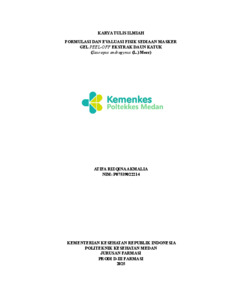 Atifa Rizqina Akmalia, Atifa Rizqina Akmalia (2025) FORMULASI DAN EVALUASI FISIK SEDIAAN MASKER GEL PEEL-OFF EKSTRAK DAUN KATUK (Sauropus androgynus (L.) Merr). Diploma thesis, Poltekkes Kemenkes Medan.