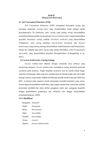Cacing Soil Transmitted Helminths (STH) merupakan kelompok parasit usus yang