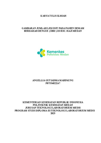 Marpaung, Angellia Gutiadma (2025) GAMBARAN JUMLAH LEKOSIT PADA PASIEN DEMAM BERDARAH DENGUE ( DBD ) DI RSU. HAJI MEDAN. Diploma thesis, Poltekkes Medan.